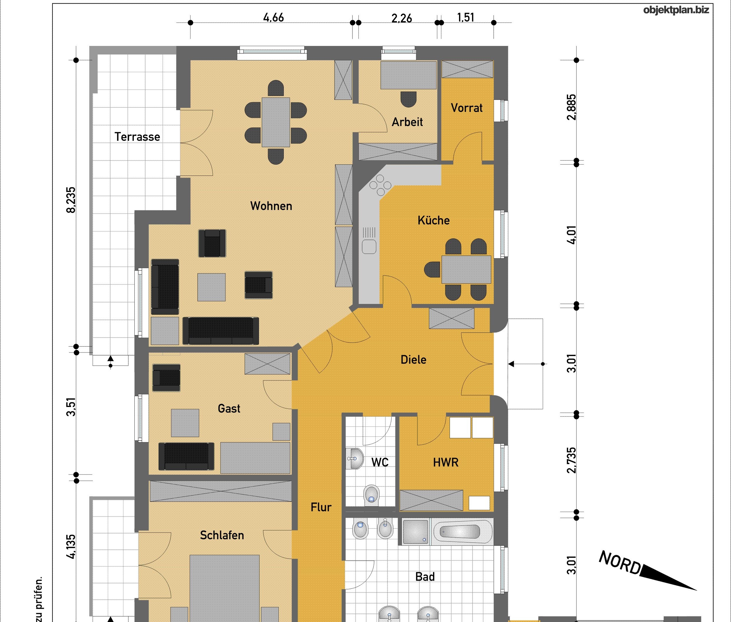 Der ansprechende Grundriss erleichtert und beschleunigt die Entscheidungsfindung und vermeidet eine Vielzahl von Gesprächen und zeitraubenden Besichtigungsterminen.